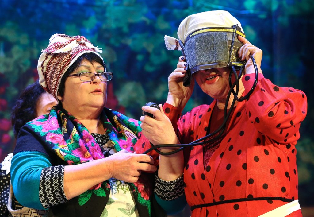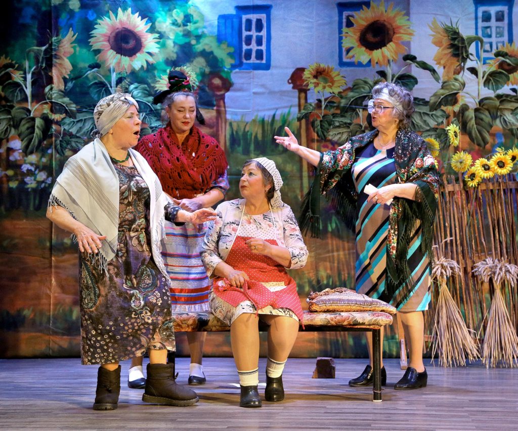 Что интересно, постановщики рискнули предложить зрителю так называемую синтезированную постановку: сцены деревенской жизни органично перемежались песнями и танцами артистов РДК, которые стали тоже действующими лицами спектакля. А потом и вовсе зазвучали задорные частушки — без них живые картинки деревенской жизни, наверное, оказались бы неполными. И когда вместе с деревенскими бабоньками в пляс пустился единственный мужичок — дед Митрофан, появившийся на сцене практически к финалу, зал взорвался бурными аплодисментами.